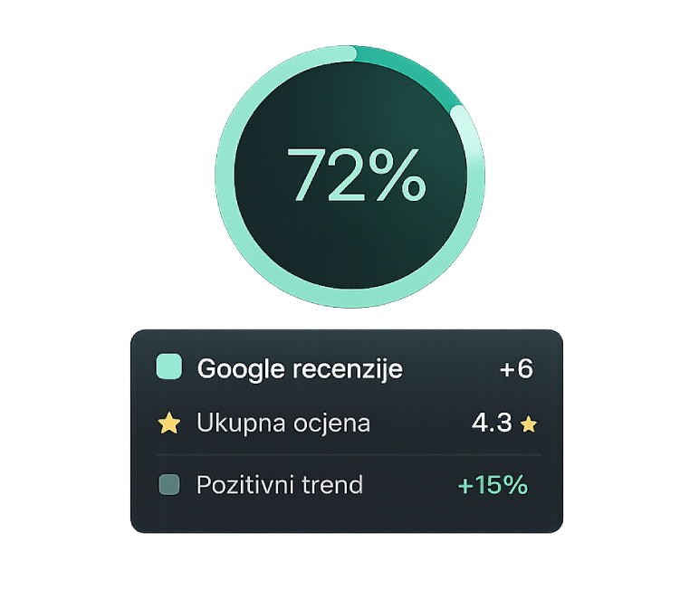 Fokusiramo se na bitno—više recenzija, bolje ocjene i automatizaciju—bez nepotrebnih stvari koje Vas usporavaju.
